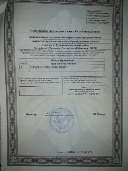 Адрес местонахождения образовательной организации* 368763, Республика Дагестан, Сулейман-Стальский район, с. Буткент, улица Шоссейная, 26